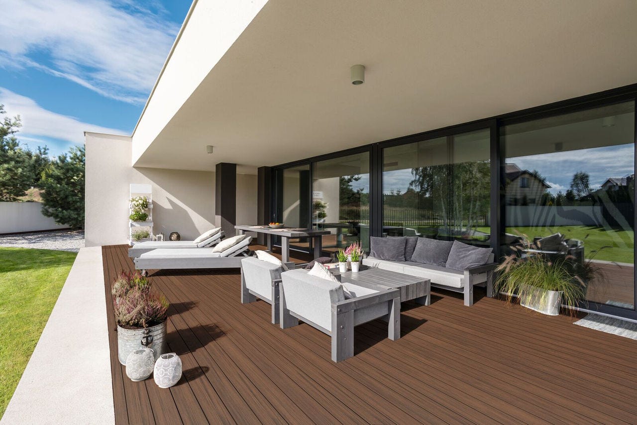 Twinson-terrasplanken combineren kunststof en houtvezels voor een natuurlijke uitstraling én superieure duurzaamheid. Dankzij het Twinson Click-systeem installeer je ze eenvoudig zelf.